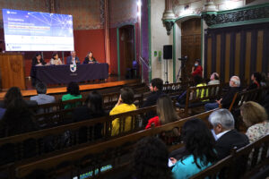 La jornada inaugural se realizó en miércoles 30 en el salón de honor de la Universidad Tecnológica Metropolitana (UTEM), con el panel de conversación “Fortalecimiento de las Universidades del Estado: línea de trabajo y desafíos”, en el cual participaron representantes de los proyectos estructurales, por la Red 2099-1 Ethos, Paola Quintanilla, vicerrectora académica de la UMCE; Red 2099-3 Sistema de Información, Soledad Narea, directora general de Desarrollo y Red 2199-1 VcM, Osvaldo Bernales, director del Proyecto de Vinculación con el Medio. Además, la actividad fue moderada por Alejandra Silva Machefert del CUECH.