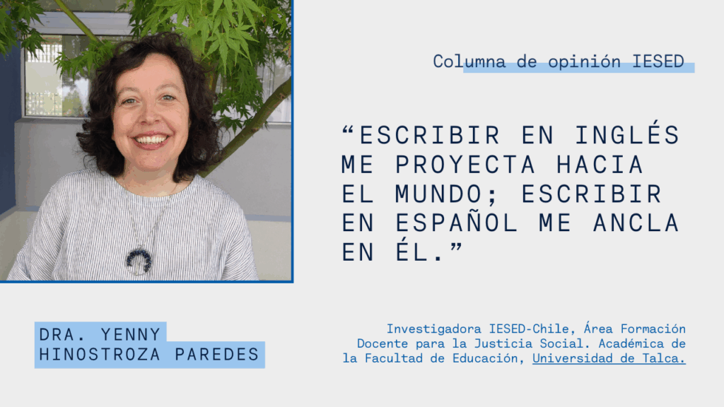 Como investigadora en una etapa temprana de su carrera, intento construir una trayectoria sostenible, una que no sacrifique el sentido en nombre de la productividad. Escribir en inglés me proyecta hacia el mundo; escribir en español me ancla en él. Tal vez el desafío no sea escoger una lengua por sobre otra, sino tejer con ambas una forma de habitar el mundo académico que sea honesto y plural. Publicar, en la lengua que sea, trasciende la mera estrategia de visibilidad para convertirse en una práctica de mediación cultural que reafirma que, desde el sur, también producimos conocimiento que importa, interpela y transforma.